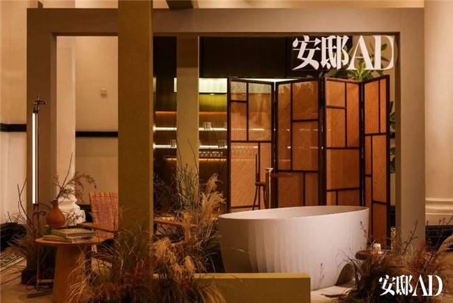 在本届AD Corner展区,科勒携两款代表性卫浴作品登场,来自科勒高端产品线——科勒精选(Kohler Exquisite)的旭珂1.7米椭圆形清雅石纹理浴缸(风舞漫沙),以及芮怡落地式浴缸花洒龙头。作为本次“东方自然之韵”主题展陈的重要一环,科勒展区以松竹植艺与大地色系构筑出温润的空间秩序,步入其间,能在光影流动中感受到自然的呼吸节奏。旭珂浴缸、芮怡龙头的材质、线条及水感与空间相互映衬,共同营造出流动而宁静的东方意境。