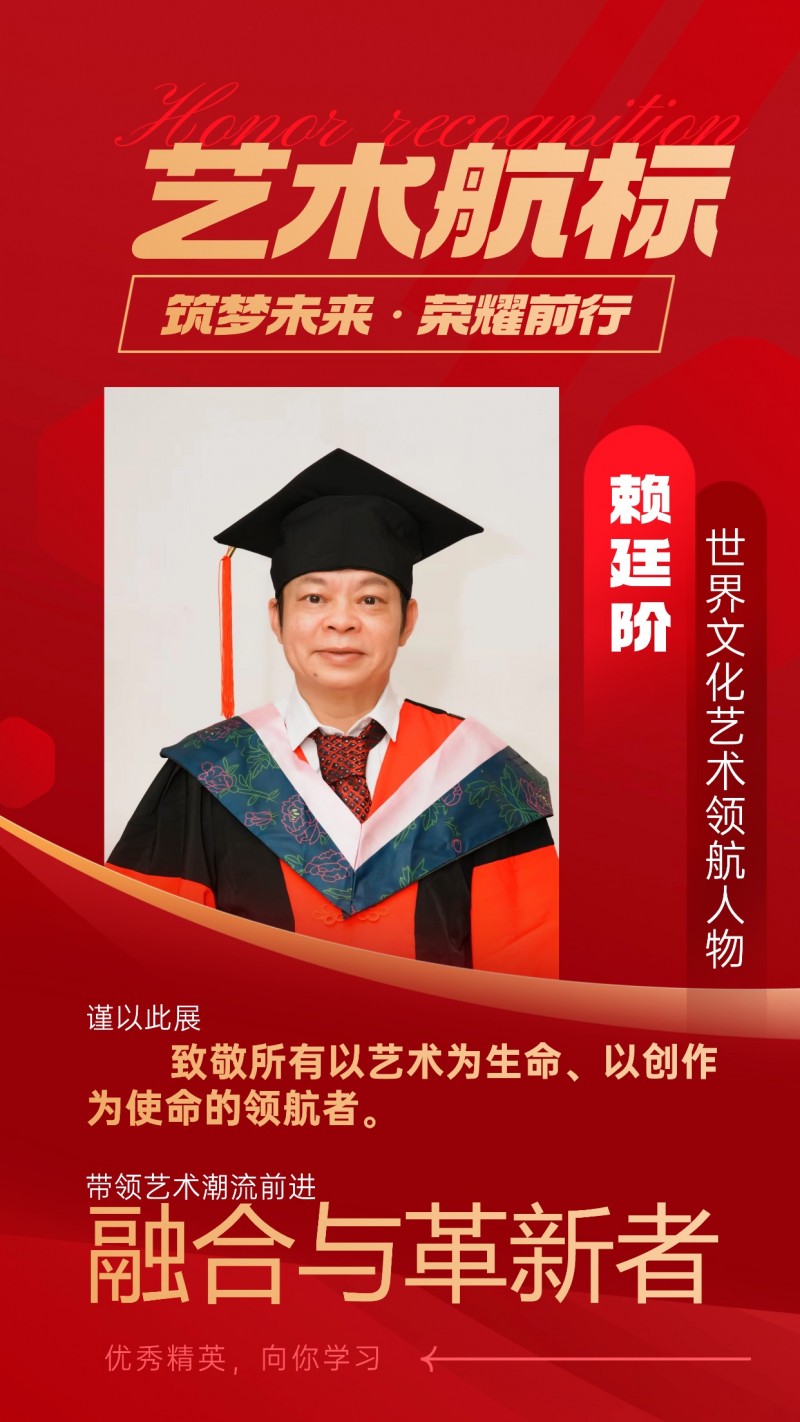 赖廷阶,广东茂名人。文学博士,人文学博士,艺术学博士,著名文化学者,研究员,国家一级美术师,国家书法高级讲师。现为中国作家协会会员,中国书法家协会会员,中国剧作家协会会员,中国音乐文学学会会员,中国通俗文艺研究会理事,中国东方文化研究会研究员,香港美术家协会副主席,香港文学艺术研究院研究员,香港文艺杂志社签约作家,中国作家在线签约作家。