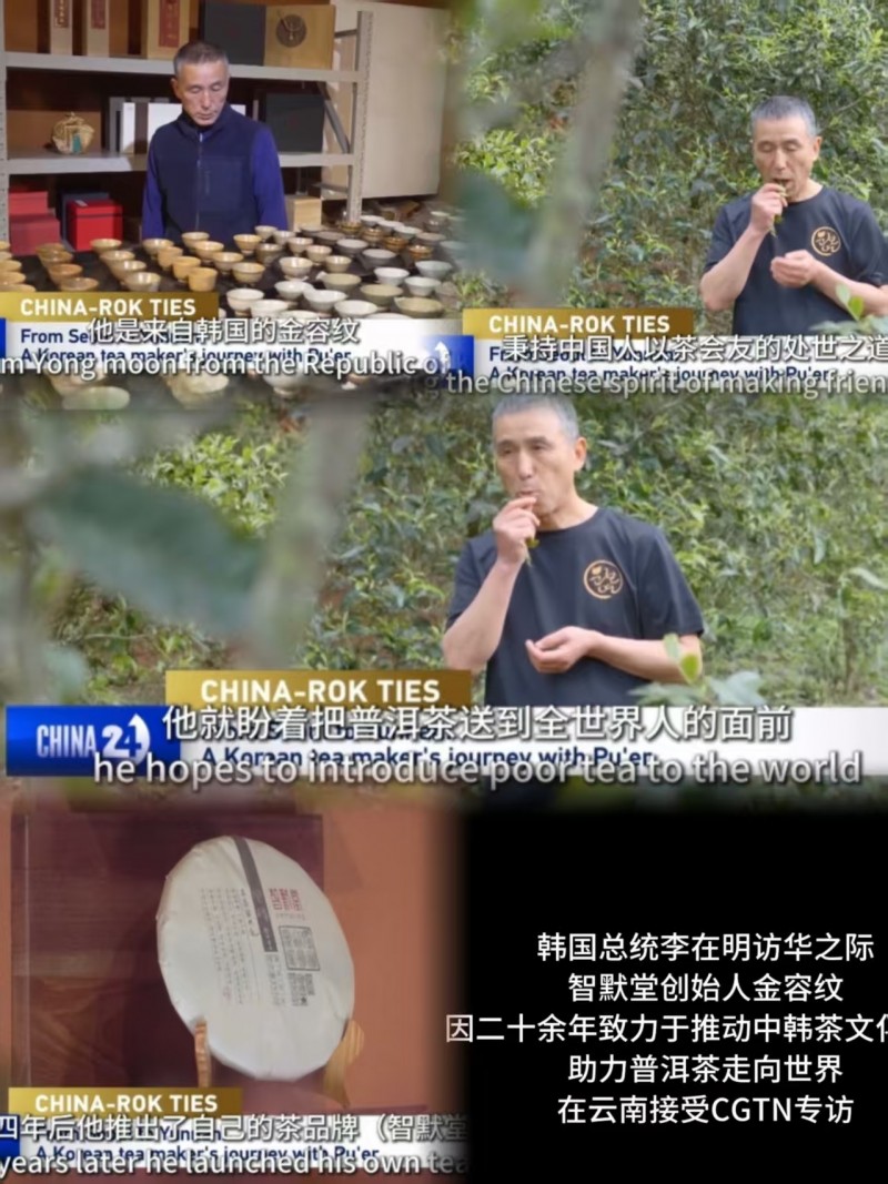 近日,随着韩国总统李在明率庞大经贸代表团访华、中韩两国签署多项合作意向,双边经贸文化交流再次成为焦点。在此背景下,中国国际电视台(CGTN)走访了在华各行各业的韩国企业家。在代表中国文化的茶行业,节目专访了一位扎根世界茶树原生地云南,制茶二十余年,创办高端精致古树普洱茶品牌“智默堂”的制茶人金容纹先生。采访中,金容纹以其独特的跨文化视角,讲述了如何以一片普洱茶,连接中韩,走向世界。