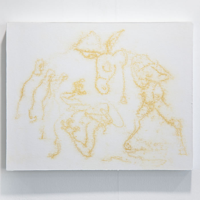 在早期作品中,我们看到“画什么”对龚若愚来说似乎还很重要,十年专业的传统训练让他能够通过绘画、拼贴甚至雕塑等多元方式满足和丰富其作品期望的叙事性。然而个展“笑点之下”却给了我们不同的面貌,驴的形象渐渐从画中隐退,抽离成纠缠的线条,图像看似隐晦,但绘画痕迹跃然成为了语言的可视觉化呈现,寓意在其间若隐若现。如果说叙事性需要具象来承载内容,那脱离叙事的桎梏,感受力表达便如同一匹脱缰的野马。同样,从受众角度,过分写实往往容易剥夺观众的感受空间,而龚若愚的新作品就如同抽丝剥茧,留给观者更多想象余地,参与到创作的延续和发展中来。