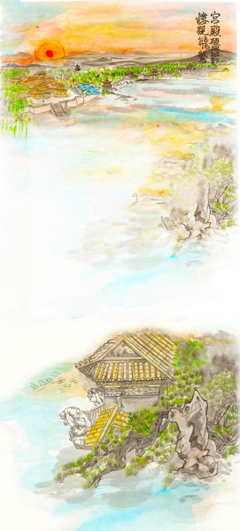 ▶ 修行者的观想之旅:化身汉代导览穿越未央宫,笔触随劳工抬木青筋暴起,墨色伴匠人髹漆层层积淀