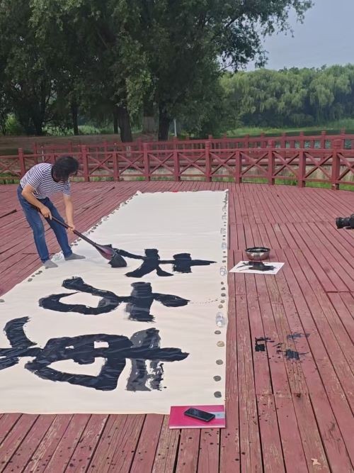 2025年7月11日,第五届东方老年文化节筹备工作迎来重磅喜讯。著名艺术家、中国书画院副院长、中国诗酒文化协会东方老年文化节工作委员会主任陈海安教授欣然挥毫,为文化节题写“东方老年文化节”巨幅大字,其苍劲有力、气势磅礴的书法作品,为这场即将到来的文化盛会增添了浓厚的艺术氛围。